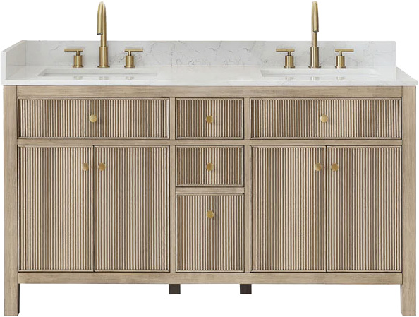 AL 567060-NK-GW-NM Cerrito 60"x21" Natural Oak double vanity with Grain White topAvailable Size
