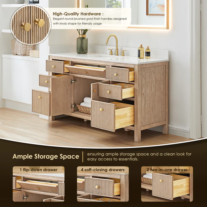 - High-Quality Hardware: Elegant, round Brushed Gold-finish handles feature an ergonomic knob for comfort and ease of use