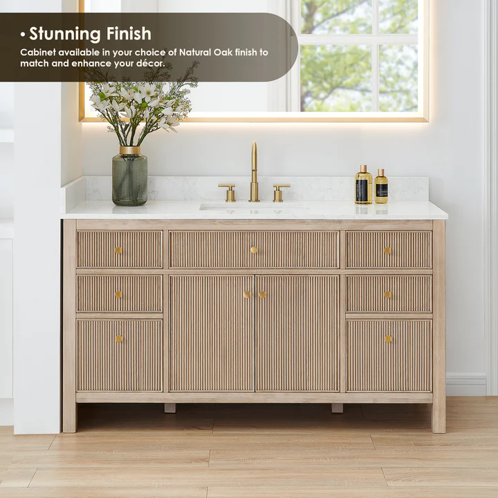 AL 567060S-NK-GW-NM Cerrito 60"x21" Natural Oak single vanity with Grain White topFeatures: