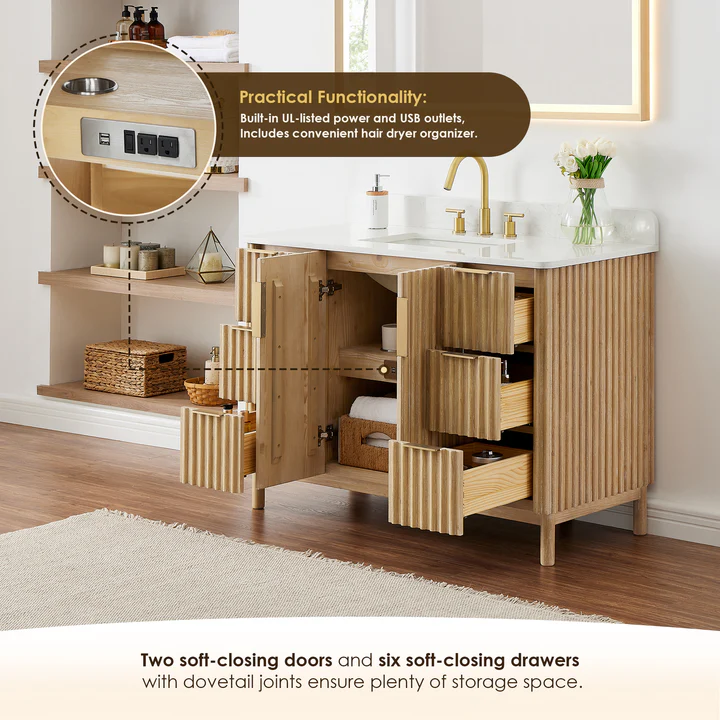 • Practical Functionality: Built-in UL-listed power and USB outlets offer a practical way to power beauty and grooming appliances. Includes convenient hair dryer organizer that keeps your favorite styling tool within easy reach