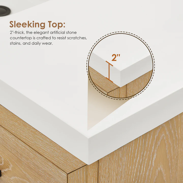 • Crafted to resist scratches, stains, and daily wear, the elegant artificial stone countertop is both durable and easy to clean.