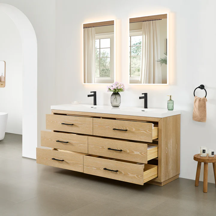 • Cabinet comes in delicate White Oak finish to bring a natural, cozy appeal to your bathroom decor.