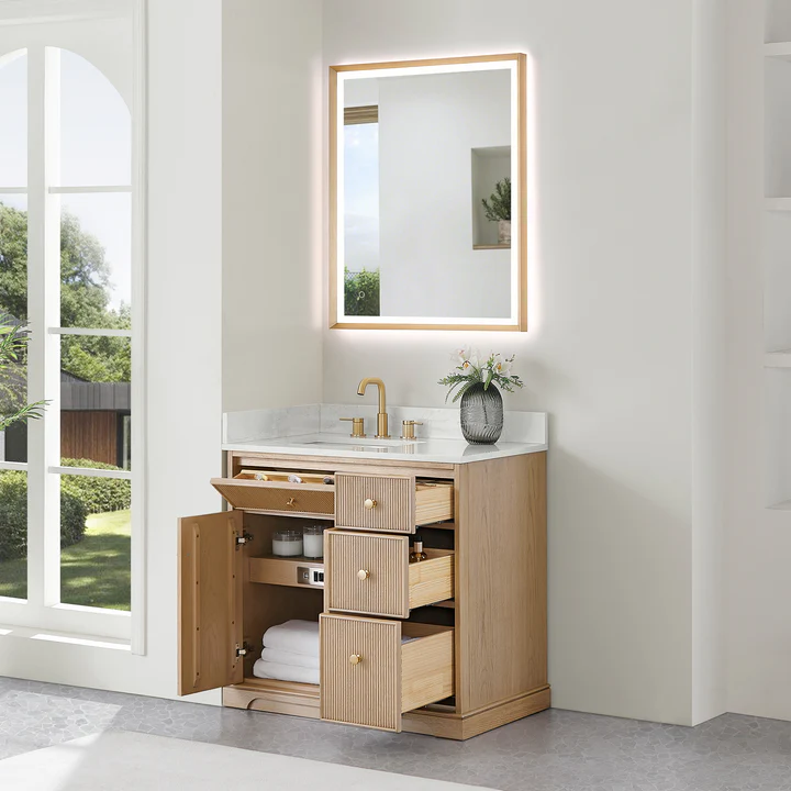 - Optional Matching Mirror: Complete your bathroom with a sleek Brushed Gold LED mirror for a coordinated look. (Mirror sold separately)