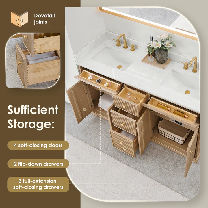 - Soft-Closing Design: High-quality soft-close hinges and drawer slides ensure quiet and gentle operation, enhancing durability.